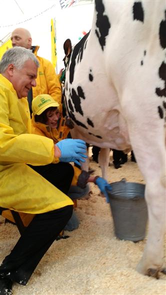 Nella foto l presidente della Coldiretti Roberto Moncalvo impegnato nella mungitura