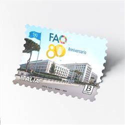 Il francobollo, emesso all’interno della serie italiana “Il Senso Civico”, che celebra istituzioni e iniziative a beneficio della collettività, rende omaggio a otto decenni di impegno della Fao per garantire la sicurezza alimentare per tutti. Ideato dalla Fao e realizzato graficamente dal Centro Filatelico dell’Ipzs, il francobollo raffigura il logo dell’80º anniversario della Fao, ispirato agli Obiettivi di Sviluppo Sostenibile (SDGs), accanto all’emblema istituzionale dell’Organizzazione e al motto “Fiat Panis”. La spiga di grano stilizzata che forma il numero 80 simboleggia la missione della Fao, mentre sullo sfondo compare la sede dell’Organizzazione nel quartiere Aventino di Roma, con la bandiera delle Nazioni Unite che sventola in alto. E' stata inoltre realizzata una serie filatelica speciale (erinnofili) ispirata al tema dell’80º anniversario e ai Quattro Pilastri del Miglioramento promossi dalla Fao: una produzione migliore, una nutrizione migliore, un ambiente migliore e una vita migliore – senza lasciare indietro nessuno. Il francobollo è disponibile in Italia dal 16 ottobre presso gli sportelli filatelici e online sul sito di Poste Italiane.