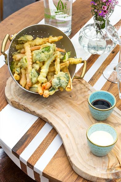 Tempura con ortaggi autunnali, erbe spontanee bio e salsa ponzu_Le Serre by ViVi_credit Serena Eller
