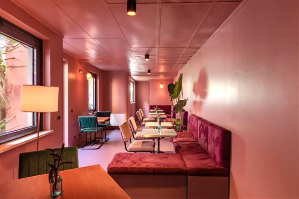 Una villetta a due piani, tipica della zona è stata sottoposta ad un attento restyling, puntando su estetica, colori e colonna sonora che inevitabilmente si riallaccia agli anni ’80. Si punta senza indugi ad una formula che permette al cliente di trascorrere l’intera serata nello stesso luogo. Le varie anime di Celeste, offrono la possibilità, come si usava una volta, senza bisogno di cambiar locale, di godersi aperitivo, cena e dopocena nella medesima location. L’ambiente è frutto dell’estro creativo della famosa scenografa televisiva e restauratrice, Simona Cipolloni, che ha fatto del color celeste la tinta cardine delle sale principali. Un ambiente dalle linee pulite, pavimenti con doghe in legno, panche in velluto e poltroncine verdi, tavoli in legno su basi di ferro e luci soffuse. Un concept che si estende in diversi ambienti: un dehors nascosto con 40 sedute e 60 coperti interni che si sviluppano su due pani, tra la tradizione del ristorante a piano terra e la modernità del club al piano superiore. In cima alla bella scala blu e al di là della tenda in velluto si accede (ogni sera a partire dalle 18:00) al club con cocktail bar e dj set.