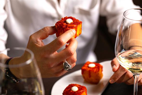 La proposta del ristorante, situato del centro di Roma a pochi passi da Campo de' Fiori, ha il filo conduttore nella filosofia del “para compartir”, ovvero del condividere i piatti a tavola. A tavola dunque solo piccoli assaggi (“morsetti”) in formato tapas ma anche la possibilità di porzioni intere con possibilità di scegliere quindi un Viaggio breve (35 euro) o un Percorso della Chef, che spazia fra piatti di carne, pesce e verdure (50 euro).