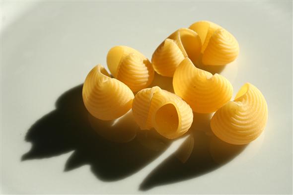 Una composizione di penne rigate, pipe, rigatone rigato e fusillo